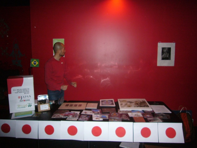 先週の土曜日、カポエイラ仲間主催のパーテイー(BELEZA PARTY)でブースを作ってもらい、日本への募金イベントをやりました。アーティスト仲間が作品を持ち寄ってくれて、それを売って、売り上げの全額をJapan Societyに寄付。