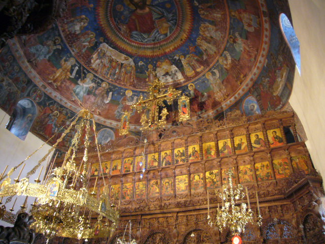 オーソドックス系の教会の中はどれもこんな感じで金ぴかです。天井全体に絵が書かれているのは結構迫力がありました。