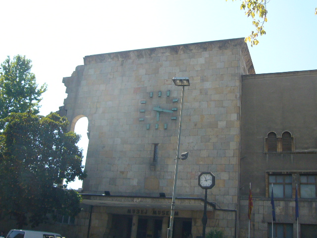 この建物はマセドニアの大地震があったときに残ったもの。当時は駅だったらしいです。時計はその地震のおきた時間でとまってます。