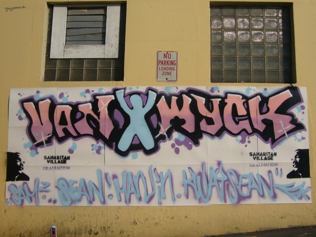 当日、出来上がったものを壁にはったら、実際にGrifittiやったクライエントよりも私のほうが感無量(爆)達成感っていうの?たまりません(笑)ま、私が書いたんじゃないんだけどね。