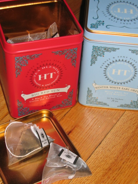 写真の左側はセイロンとアフリカンテイー(?)のブレンド。甘くってかなり気に入った。そして右のはホワイトテイーとアールグレイのブレンド。これも最高。