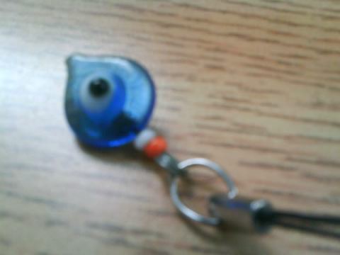ずーーーーーーーーーーーっと前にもらったトルコのお土産の魔除けチャームが丁度いい大きさだったので。。。。変りにつけてみた